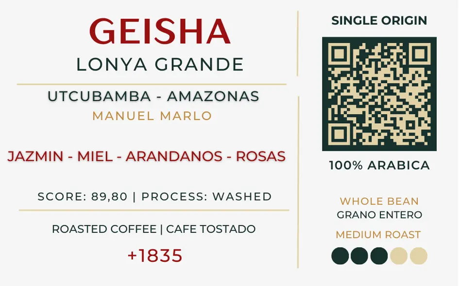 Cosecha selectiva, fermentación anaeróbica precisa y un secado solar que respetó cada detalle. El resultado: 89.80 SCA y una experiencia que habla del trabajo de Manuel Marlo Baca y de la magia de la región Amazonas.